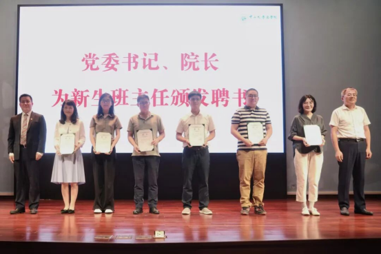 楼凤 党委梅成达书记和院长张亮教授为新生班主任颁发聘书。